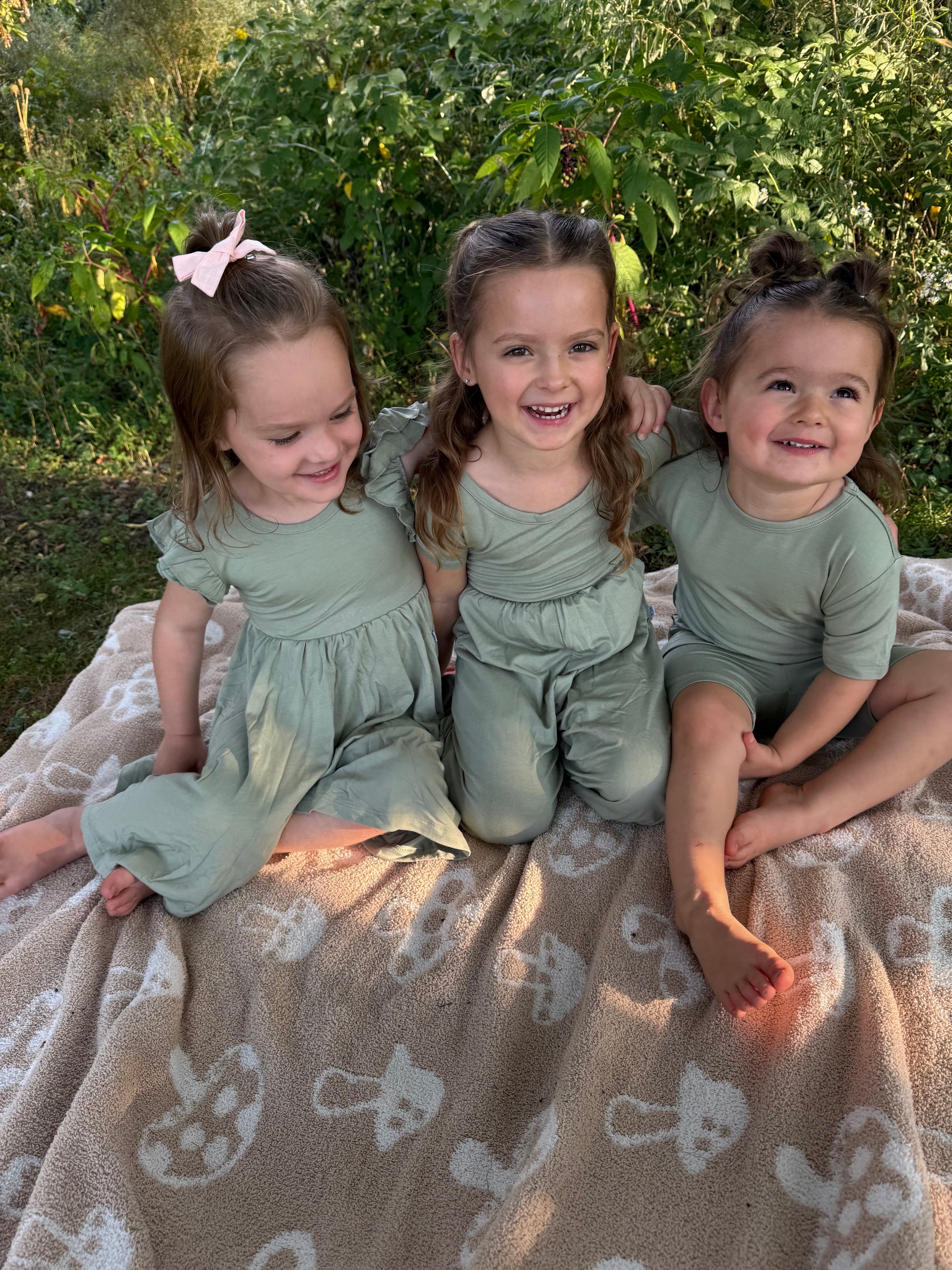Keep your little one cool, comfy, and effortlessly stylish with our Grove two-piece short set. Perfect for sunny adventures, backyard play, or laid-back lounging. Crafted from silky-soft, and breathable viscose/spandex blend material. Featuring a fitted short-sleeve top and biker shorts shorts that stay in place without restricting movement.